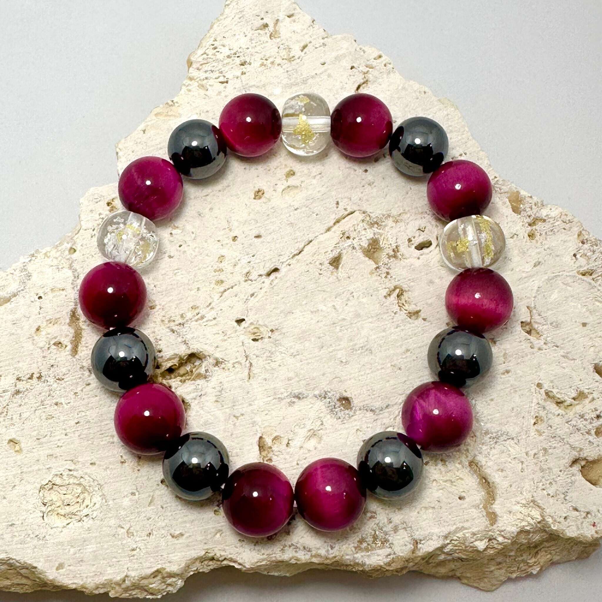 ミシェル×STARLANDコラボ 希少なタイガーアイのブルーとピンクを使用した、対人運・幸福度アップする沖縄龍神の御塩入りブレスレット